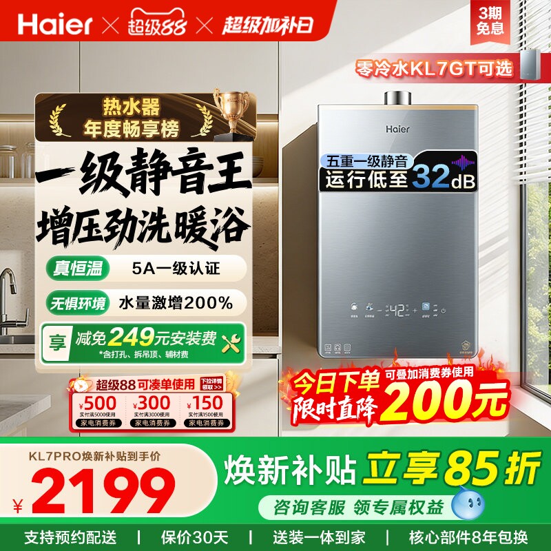38¥ CZ028 Zkbv5hG1Lr2¥ https://m.tb.cn/h.iK91bR1 海尔燃气热水器16KL7PRO家用天然气静音恒温增压零冷水可选KL7GT --------------------- 【原售价】9,999元 【现售价】5,343元。