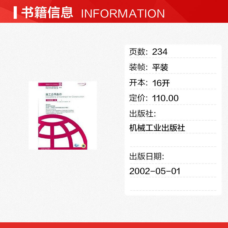 📚 施工合同条件(1 999年第 1 版)(中英文对照本)菲迪克 文献译丛 朱锦林等译 正版书籍 新华书店旗舰店文轩官网