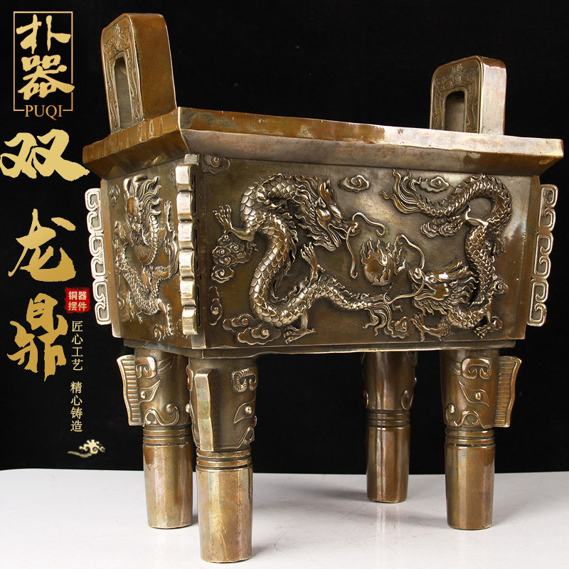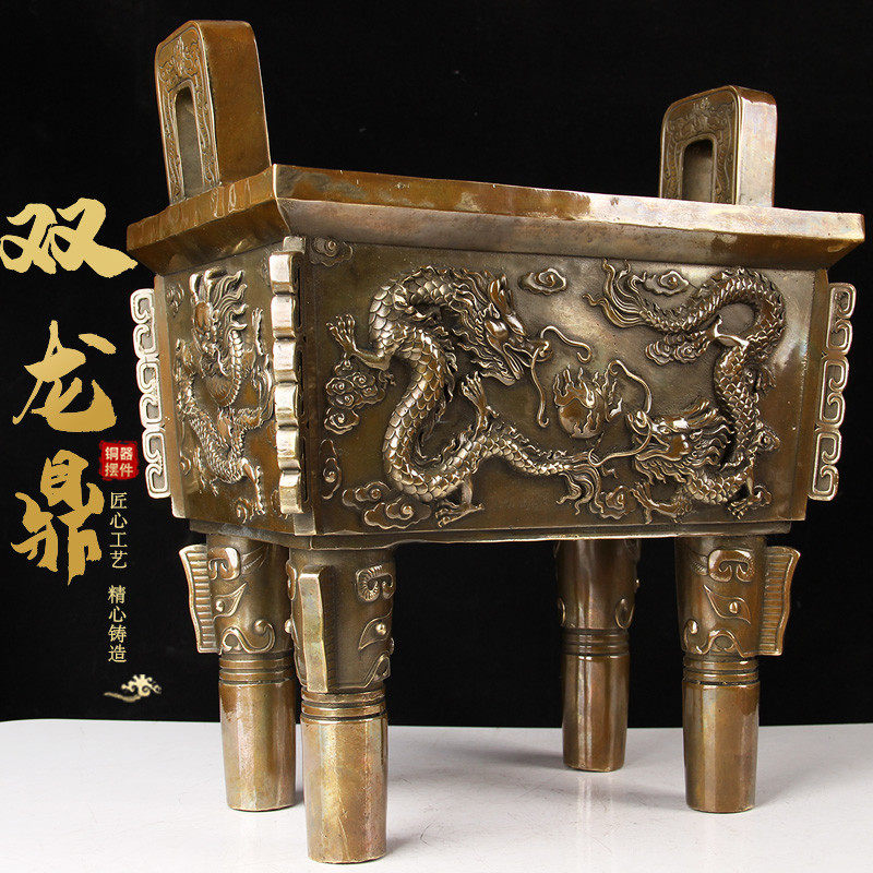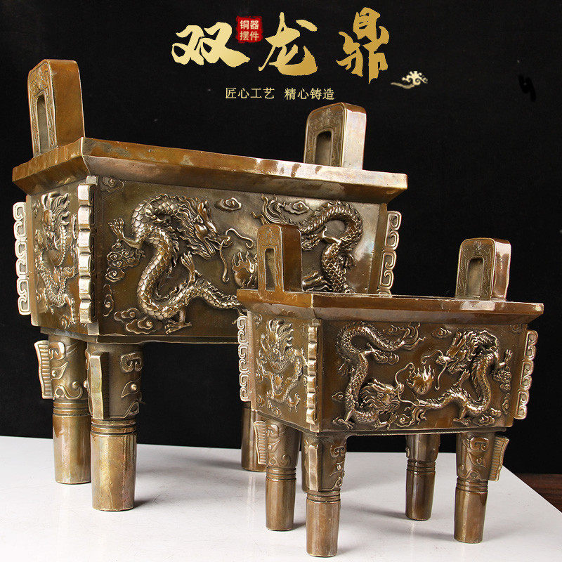 📚 大号仿古铜双龙鼎摆件 铜鼎摆件 铜龙鼎摆件