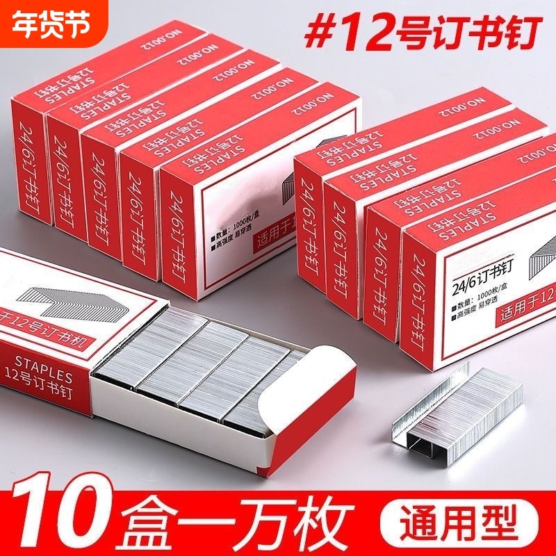 📚 10盒0012订书钉24/6通用型订书针12号钉书针办公文具用品订书器12#统一订书机钉子财务装订用品省力强钉订书