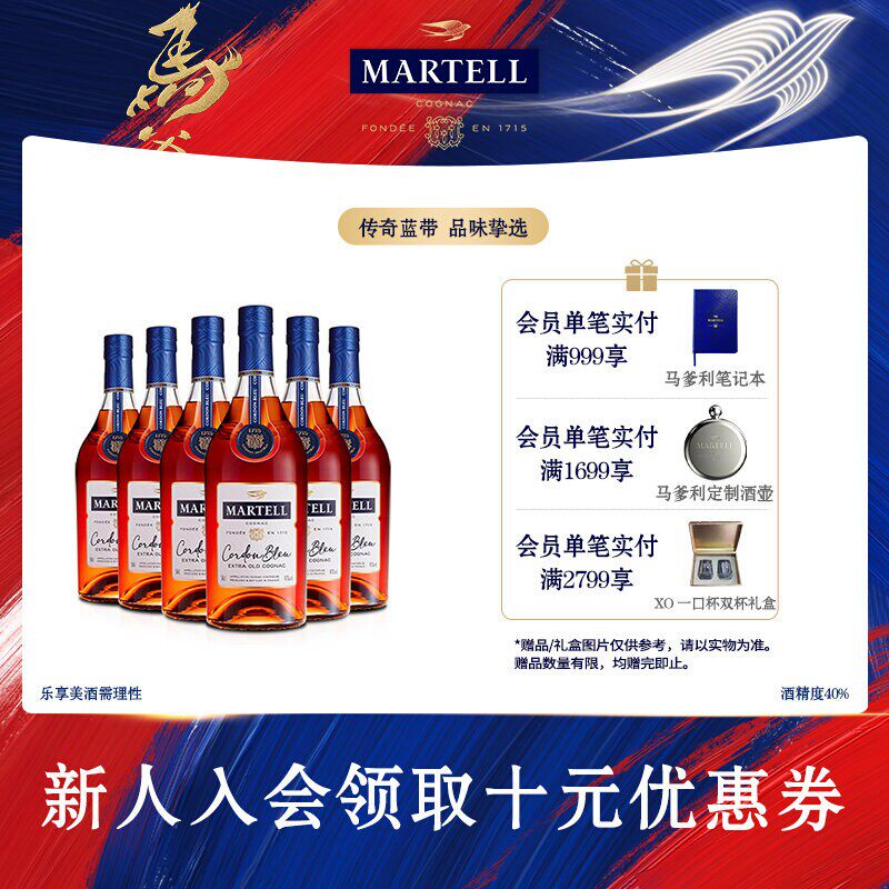 📚 Martell马爹利蓝带xo级干邑白兰地500ml*6瓶法国洋酒烈酒礼盒