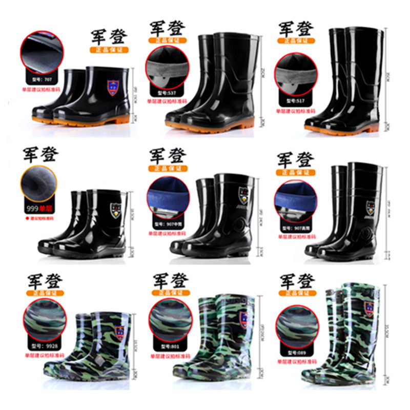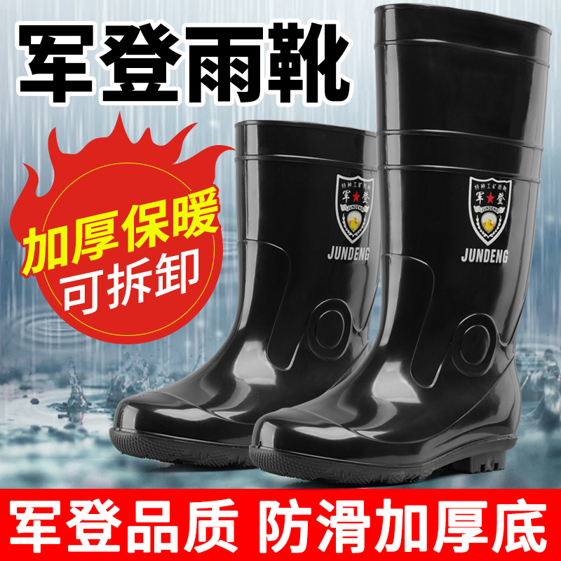 📚 军登中高筒黑色雨靴厨房防滑牛筋底胶鞋长筒加厚迷彩水靴劳保胶鞋