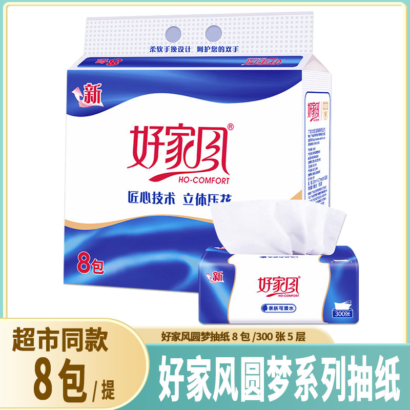 📚 好家风抽纸巾圆梦纸巾8包300张餐巾纸家用面巾纸卫生纸纸抽批发