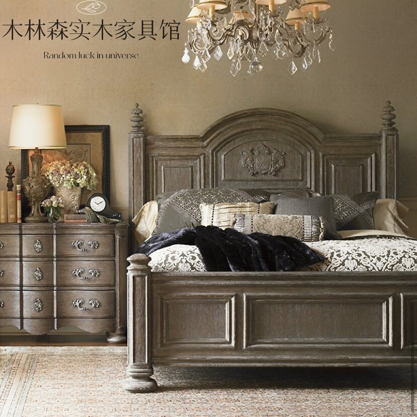 📚 美式复古主卧1.8M双人床北欧现代文艺雕花设计风格实木床框架结构
