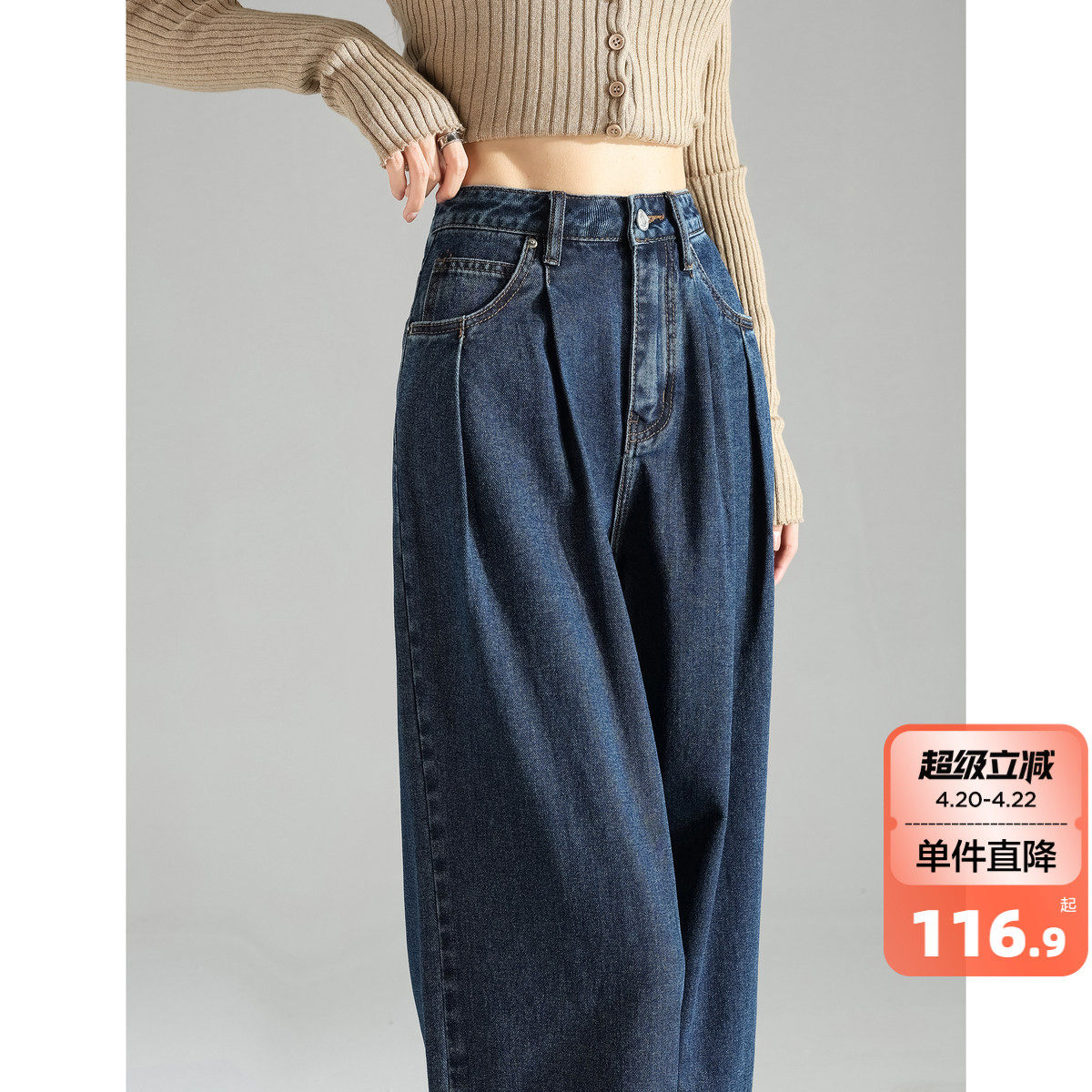 📚 唐狮春夏季新款女牛仔裤高腰垂感深色阔腿裤宽松设计感裤子女