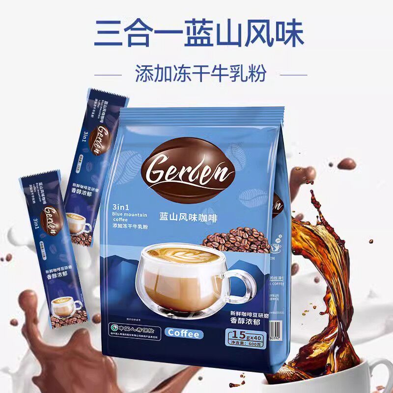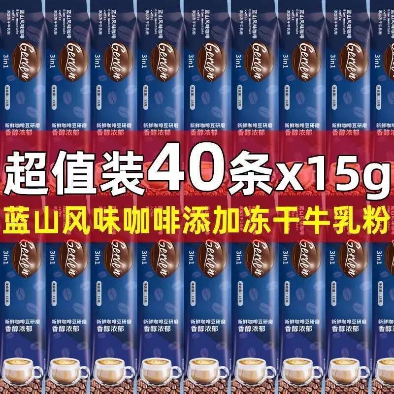 📚 冻干牛乳蓝山咖啡速溶特浓网红三合一咖啡粉奶香学生提神防困条装