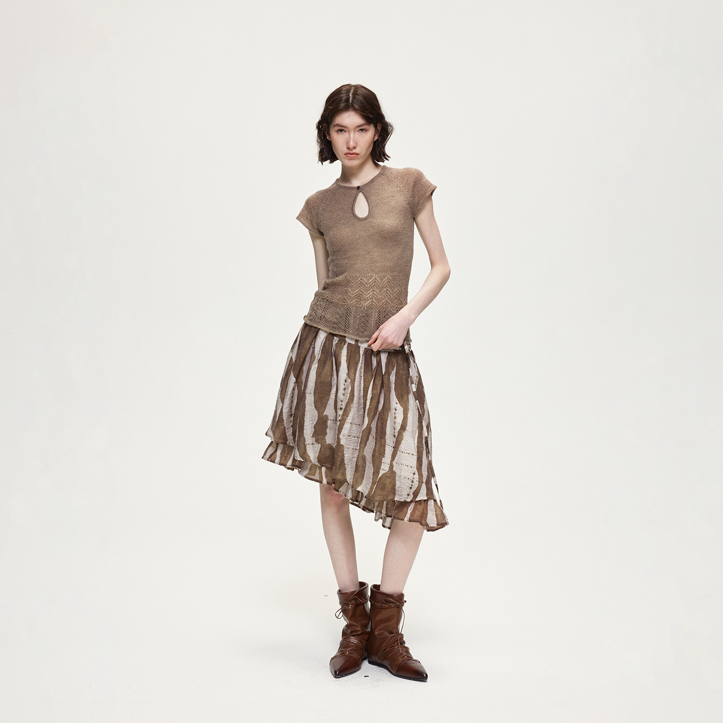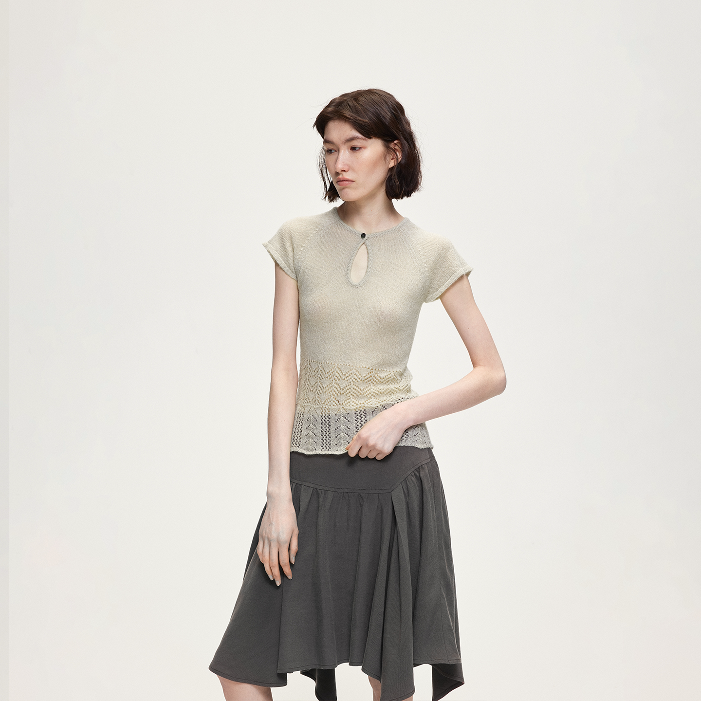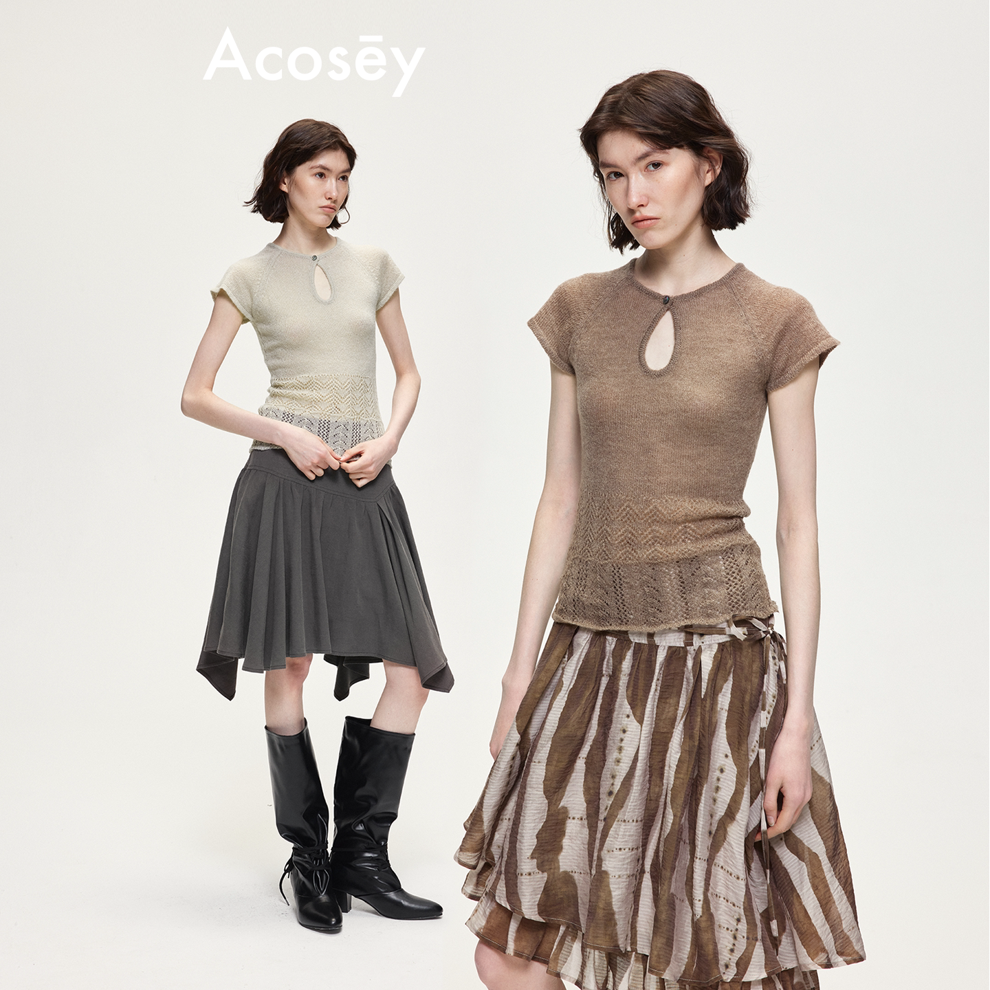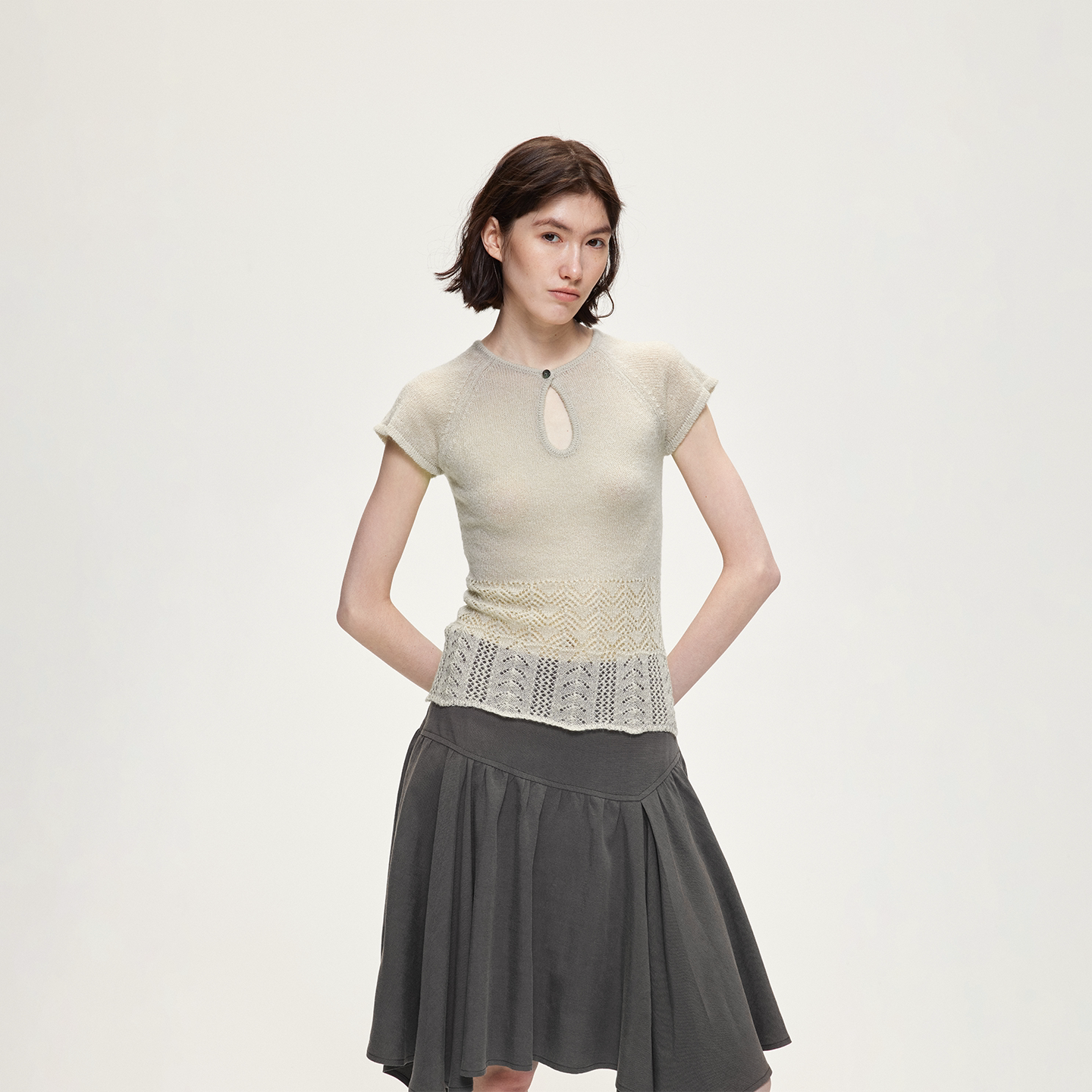 📚 ACOSEY 设计感马海毛羊毛插肩镂空设计毛织上衣