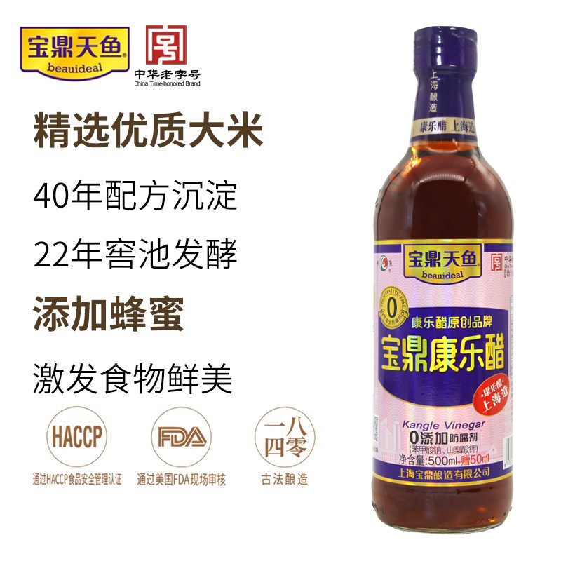 📚 上海宝鼎康乐醋500ml 玫瑰米醋食用醋蟹醋蒸饺蘸醋凉拌醋甜醋