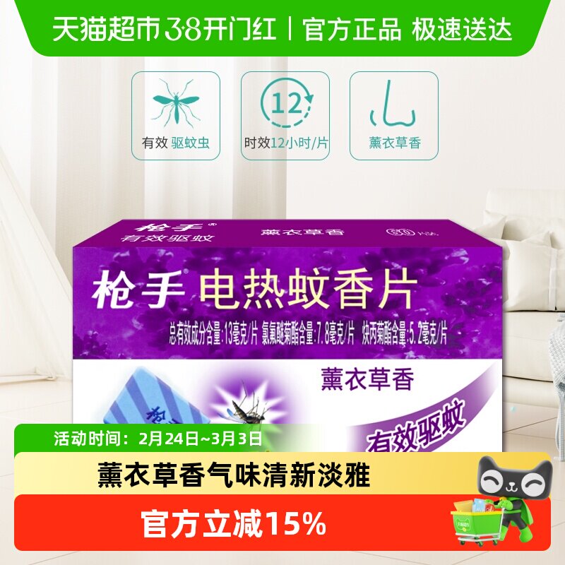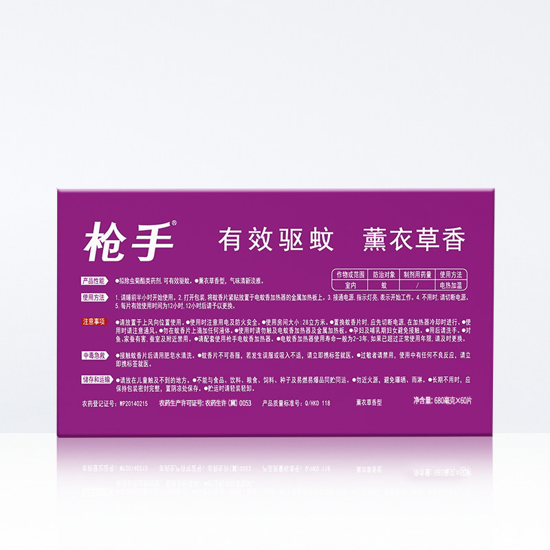 📚 枪手电热蚊香片薰衣草香60片*1盒药力持续12小时