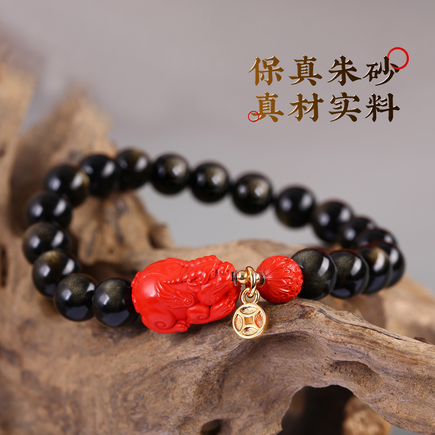 📚 禧念朱砂貔貅手串来财手链好运猫眼双金马年金曜石送男友送父亲