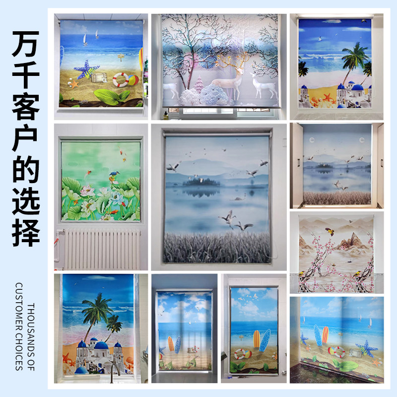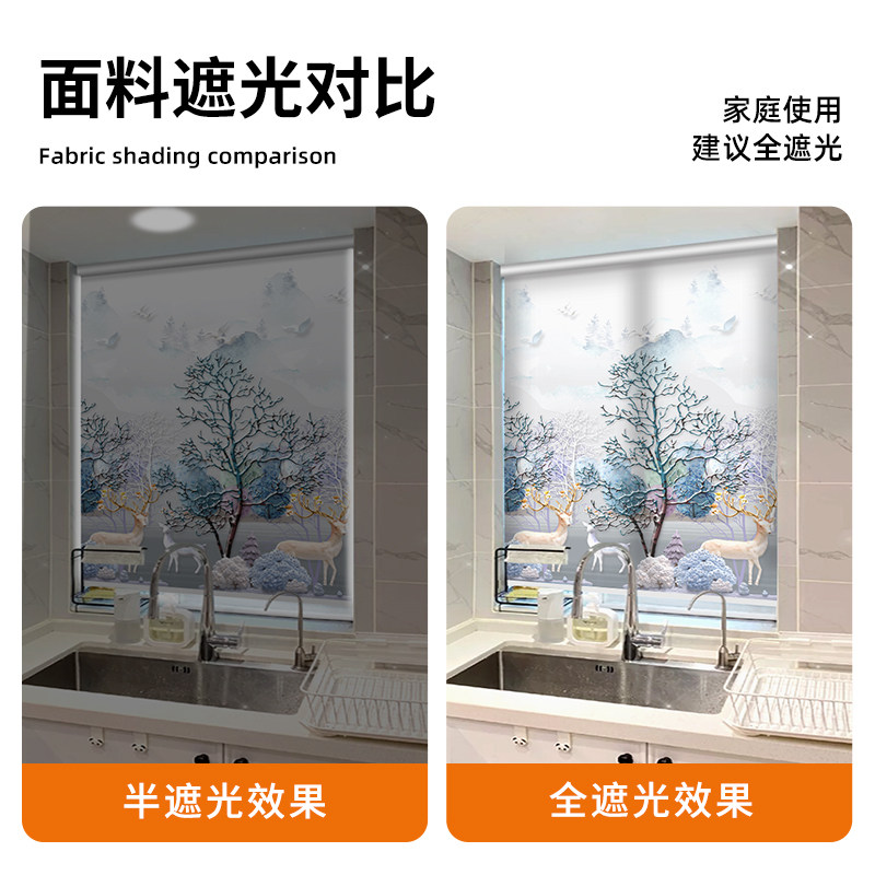 📚 免打孔遮光遮阳卷帘窗帘2026新款升降卷拉式厨房防晒卫生间彩绘