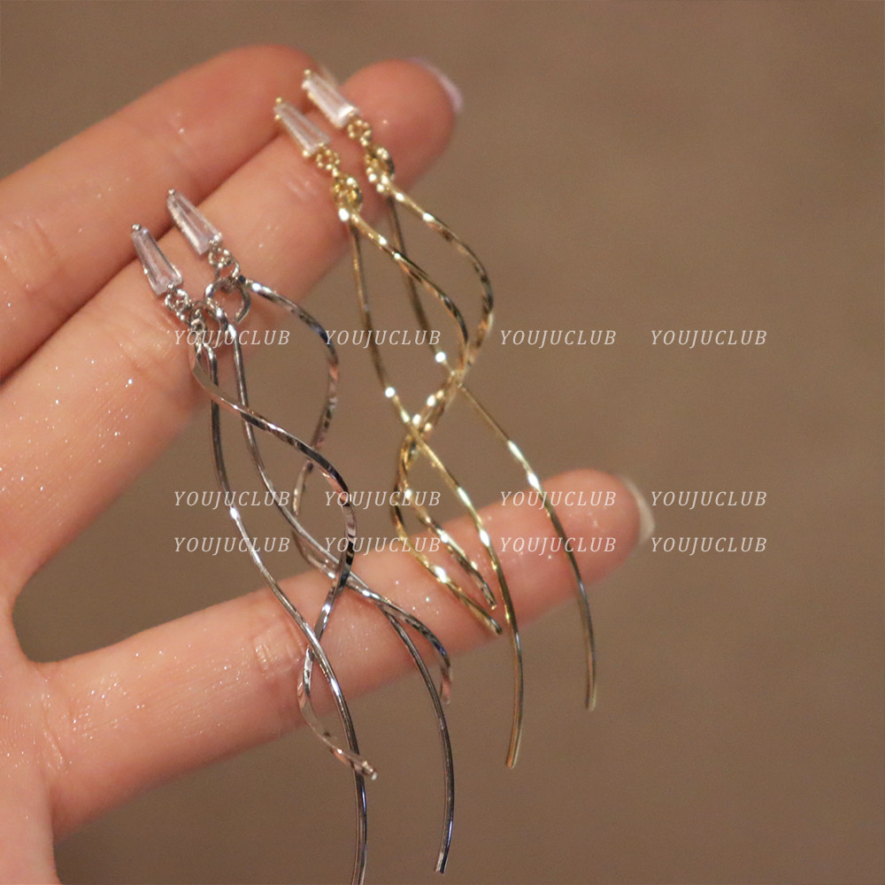 📚 YOUJUclub-优雅闪耀~高级感简约线条长款气质优雅耳环蚊香盘耳夹