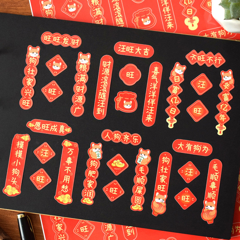 📚 猫咪狗狗宠物迷你可爱对联贴纸喜庆装饰猫窝狗舍节日布置大红贴画