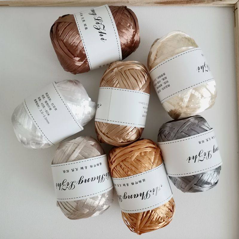 📚 拉菲草植物纤维棉草线闪亮色系手工编织线diy材料钩包包帽子专用