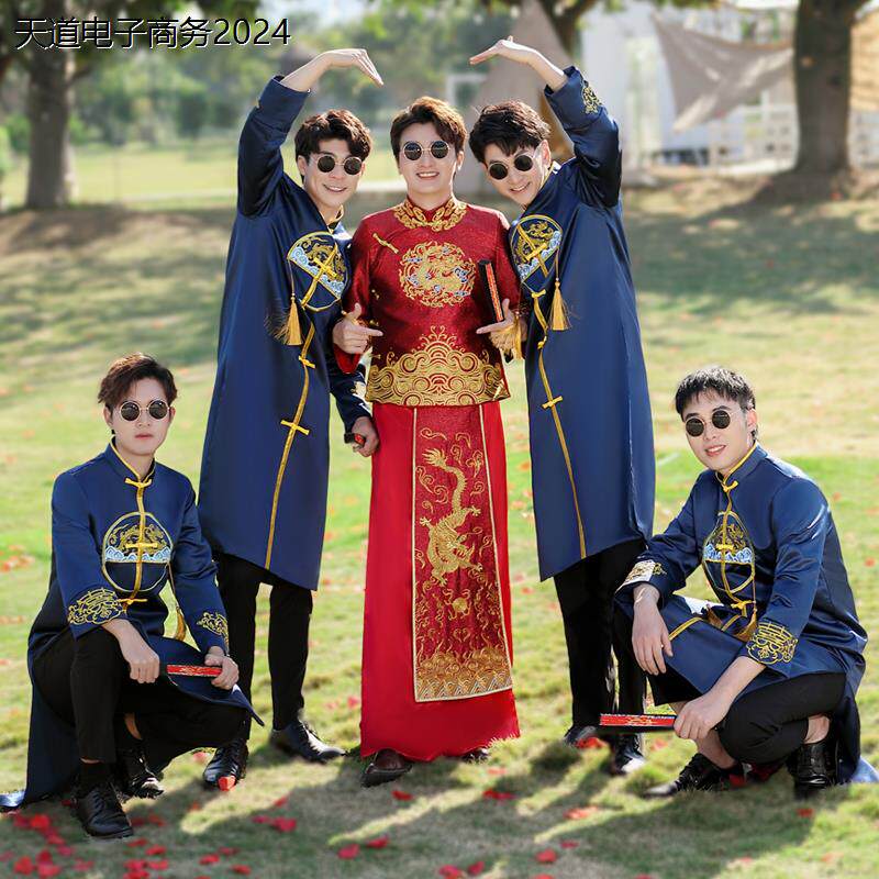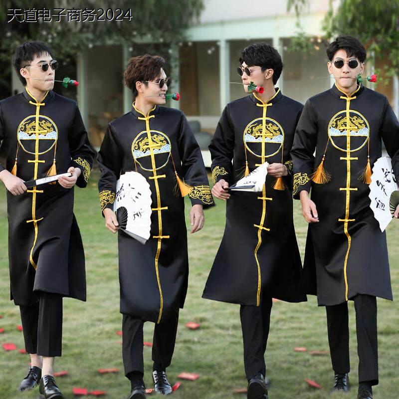 📚 伴郎服兄弟装搞笑中式婚礼接亲唐装兄弟团衣服大褂相声表演服装男