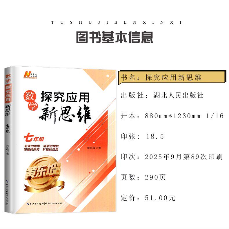 📚 【官方正版】探究应用新思维七年级数学 黄东坡培优数学初中生7年级上册下册奥数思维培优训练数学新方法初一必刷题练习册天天练
