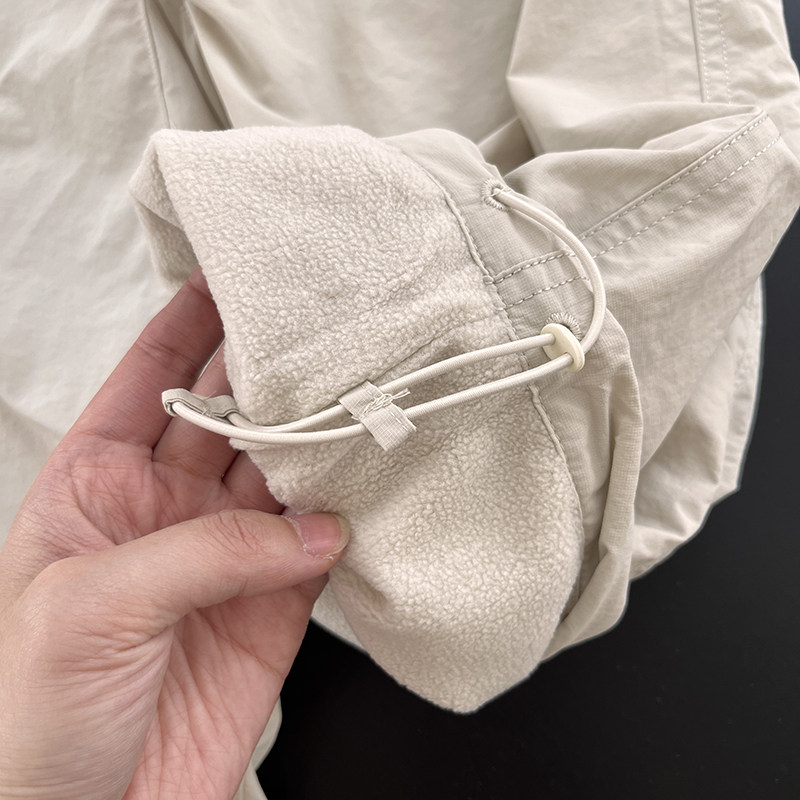 📚 岛国单U!抽绳松紧高腰加绒保暖防风工装直筒裤伞兵裤冲锋裤女冬
