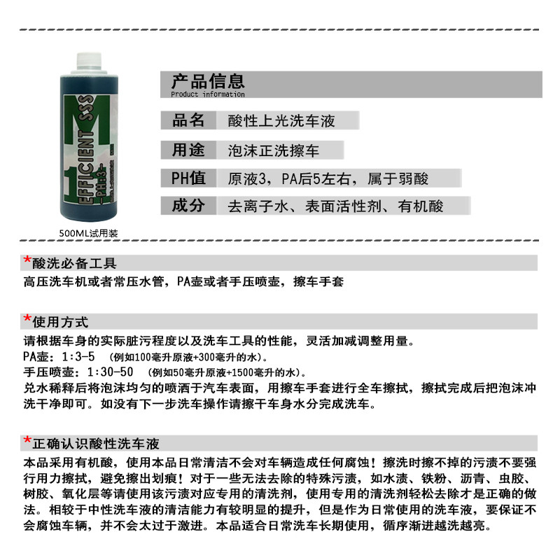 📚 高泡酸性洗车液手喷蜡增亮水激活虫胶内饰清洗强力预洗轮清轮胎蜡
