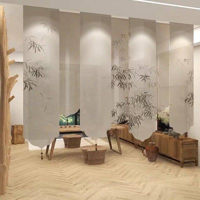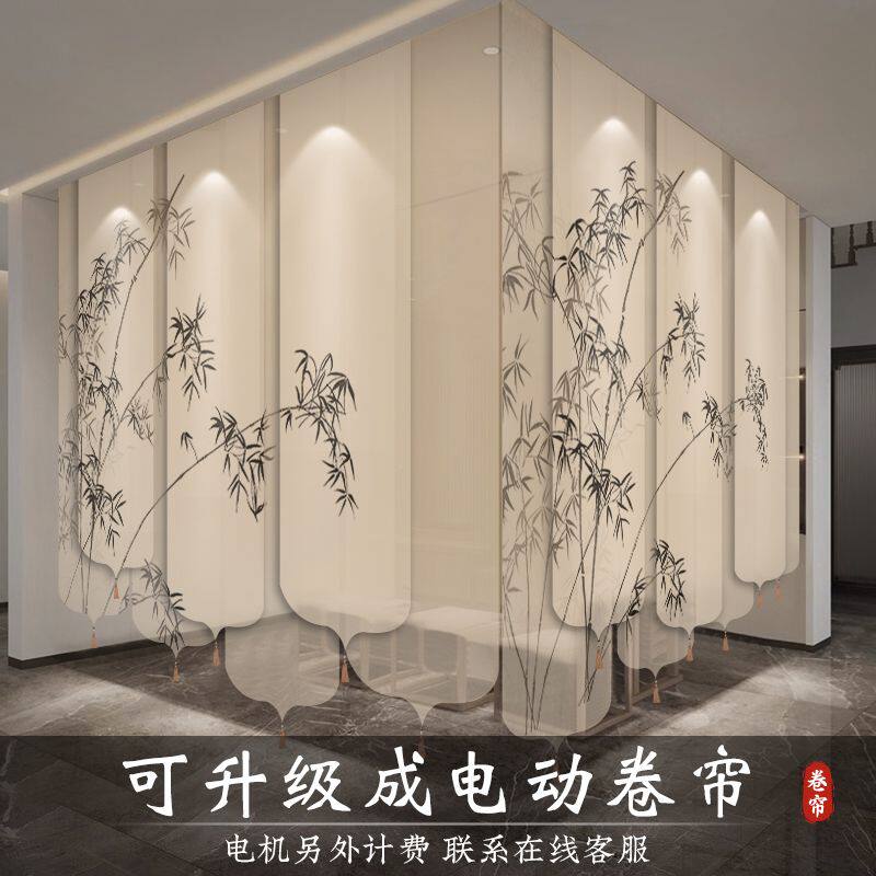 📚 新中式卷帘山水画门帘电动窗帘宋式美学禅意复古遮光软屏风隔断帘