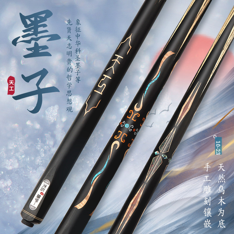 📚 天工墨子台球杆小头中式黑八球杆手工免漆一体通杆雕刻镶嵌