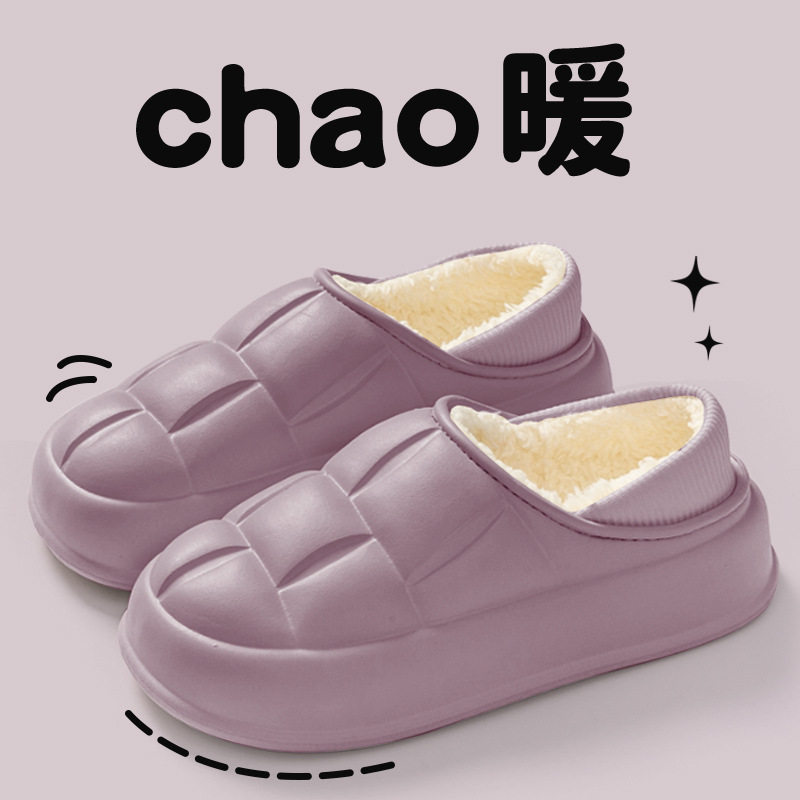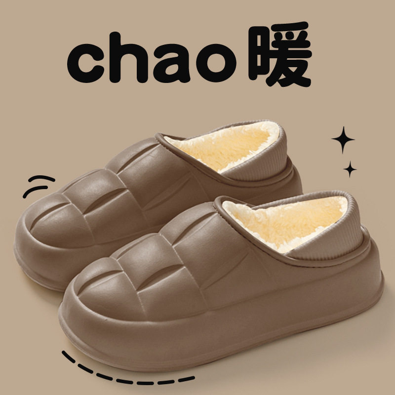 📚 防水棉鞋女士包跟厚底外穿柔软毛绒居家室内保暖棉拖鞋男冬天