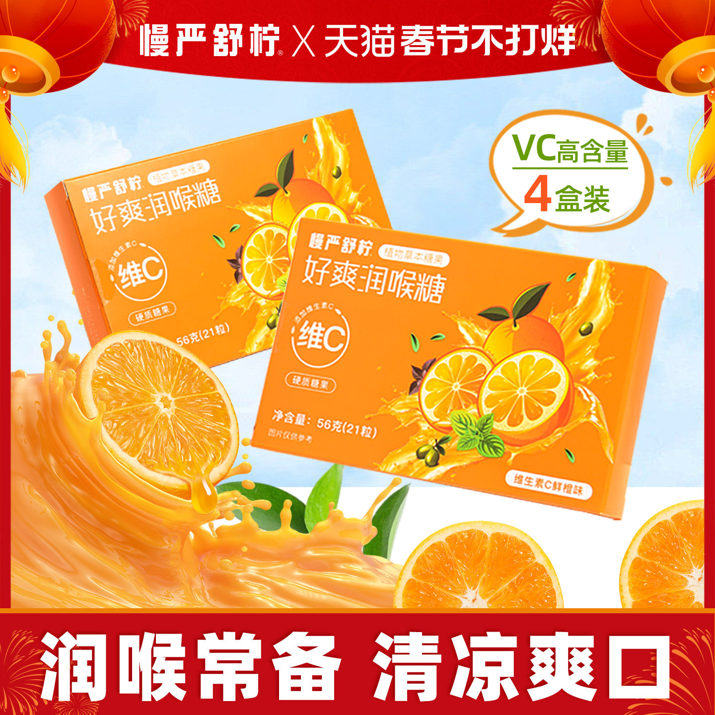 📚 慢严舒柠56g维C好爽糖润喉糖新品喉糖主播老师VC护嗓糖果薄荷糖
