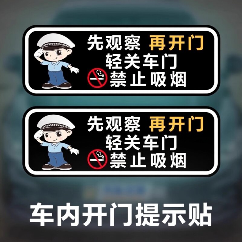 📚 车门贴纸轻关车门提示贴禁止吸烟车贴网约车出租开门警示标识
