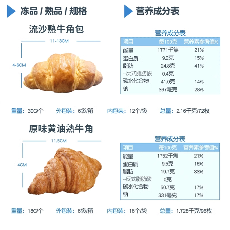 📚 奥昆大佬强牛角包立高流沙原味牛角包半成品早茶烘焙商用288g16个
