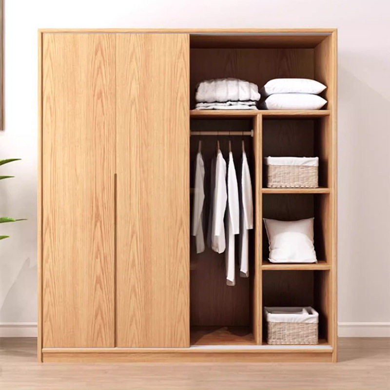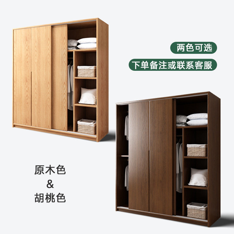 📚 全实木橡木衣柜原木风家用大小户型北欧推拉趟门衣橱儿童储物柜子
