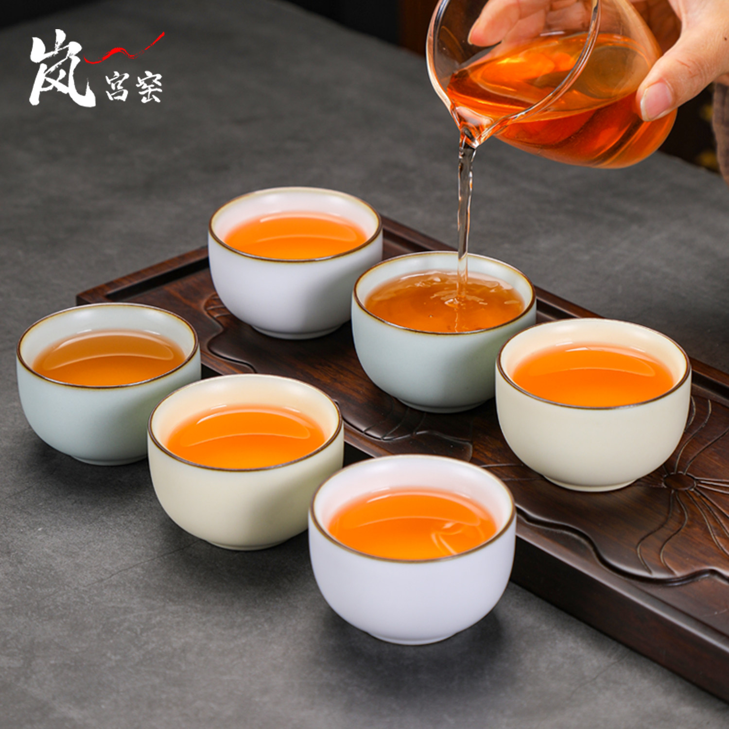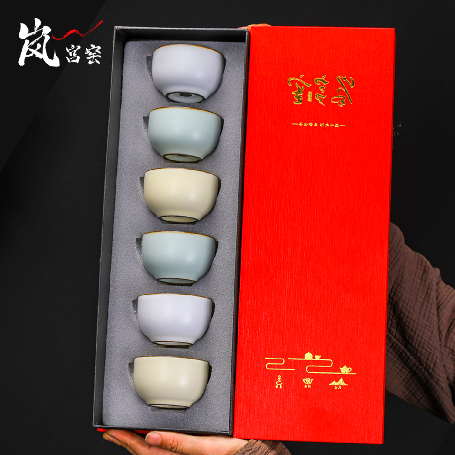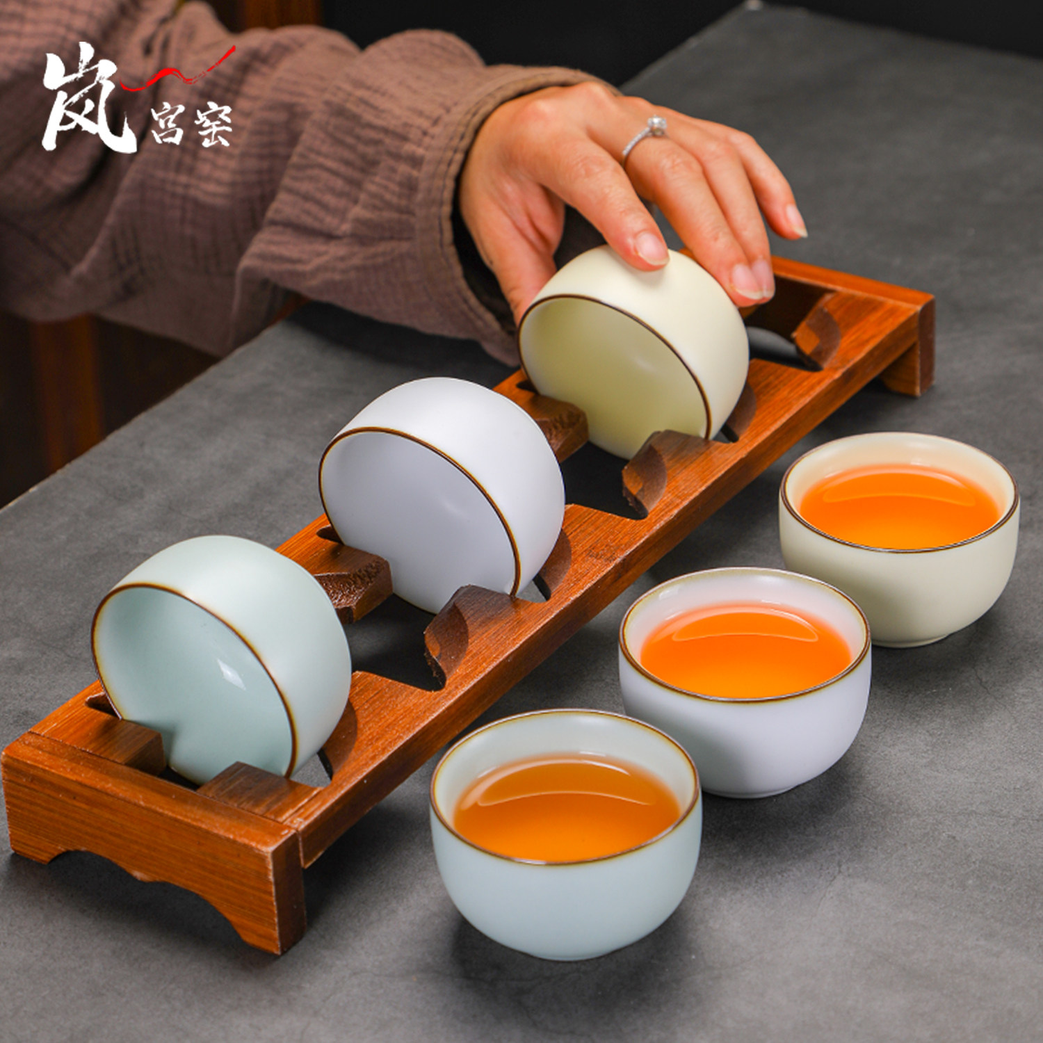 📚 高端天青三色汝窑茶杯套装6只家用品茗杯功夫茶具茶碗陶瓷主人杯