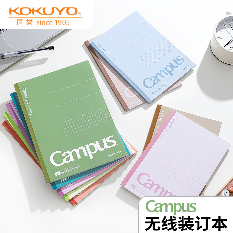 📚 日本KOKUYO国誉笔记本Campus无线装订本A5/B5多彩封面胶装本清新简约不易硌手点线本初高中学生用记录记事本