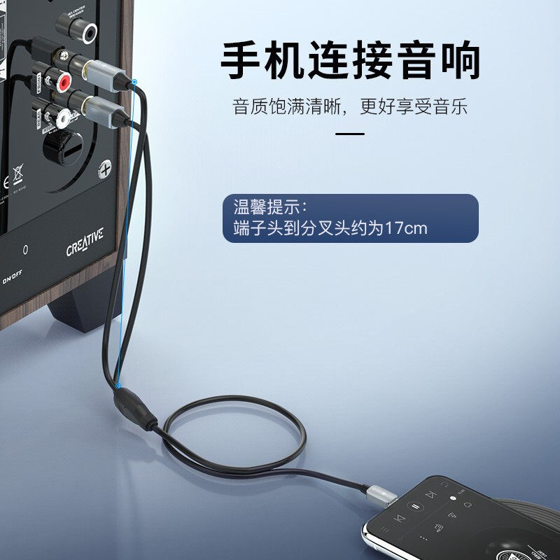 📚 秋叶原音频线一分二Typec转双莲花头3.5mm转rca插头手机台式电脑接功放音箱低音炮线输出1分2音响连接线30米