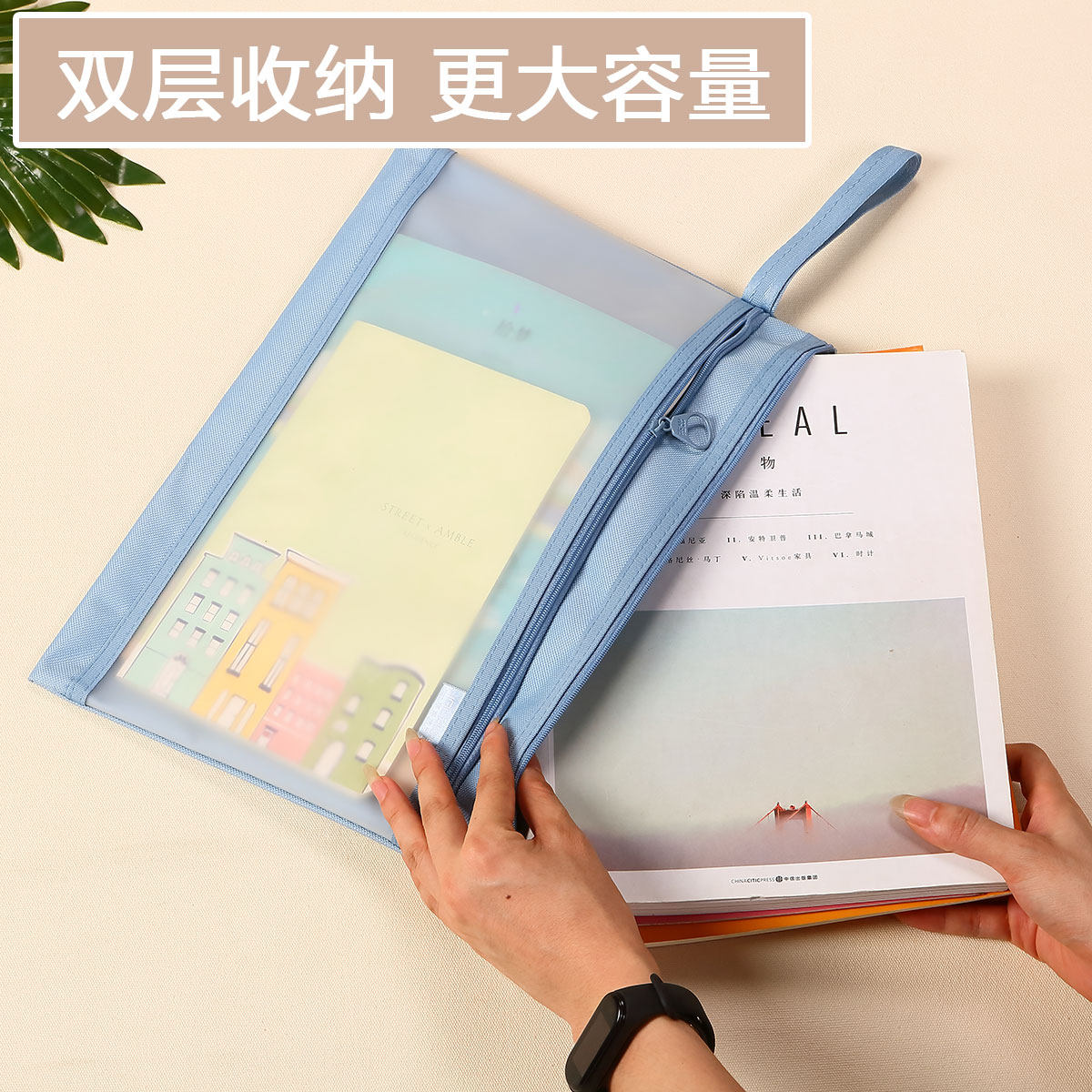 📚 杰出 TPU手提文件袋拉链式A4双层透明防水孕妇产检资料档案收纳袋