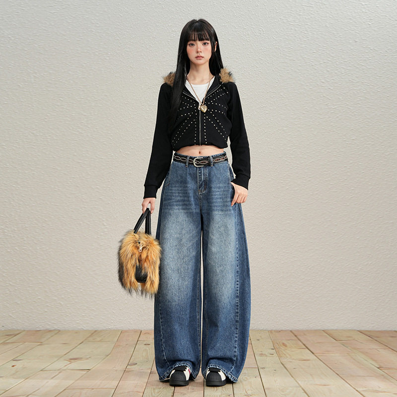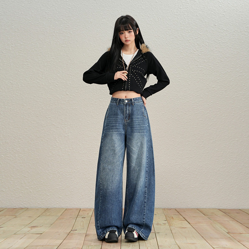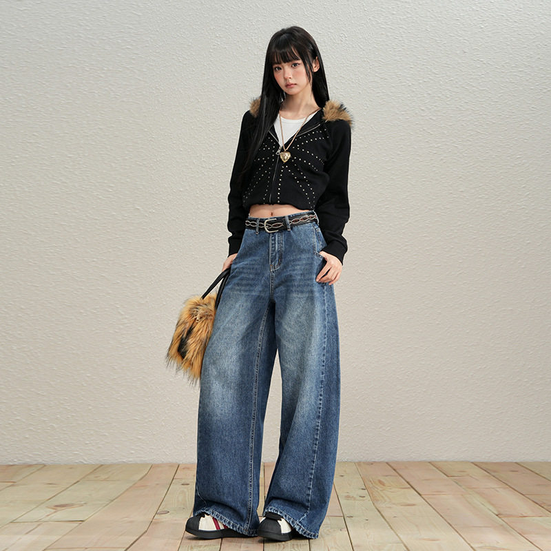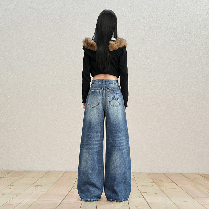 📚 美式复古做旧水洗弯刀拖地牛仔长裤宽松垂感个性刺绣
