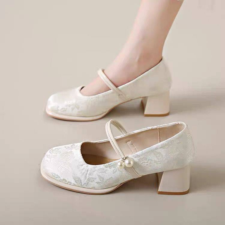 📚 玛丽珍鞋搭配马面裙旗袍的鞋子新中式国风缎面礼服婚礼法式高跟鞋
