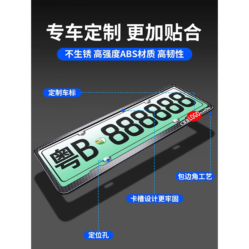📚 车牌边框新能源绿牌照框汽车牌架框罩专用比亚迪碳纤维蓝牌保护套