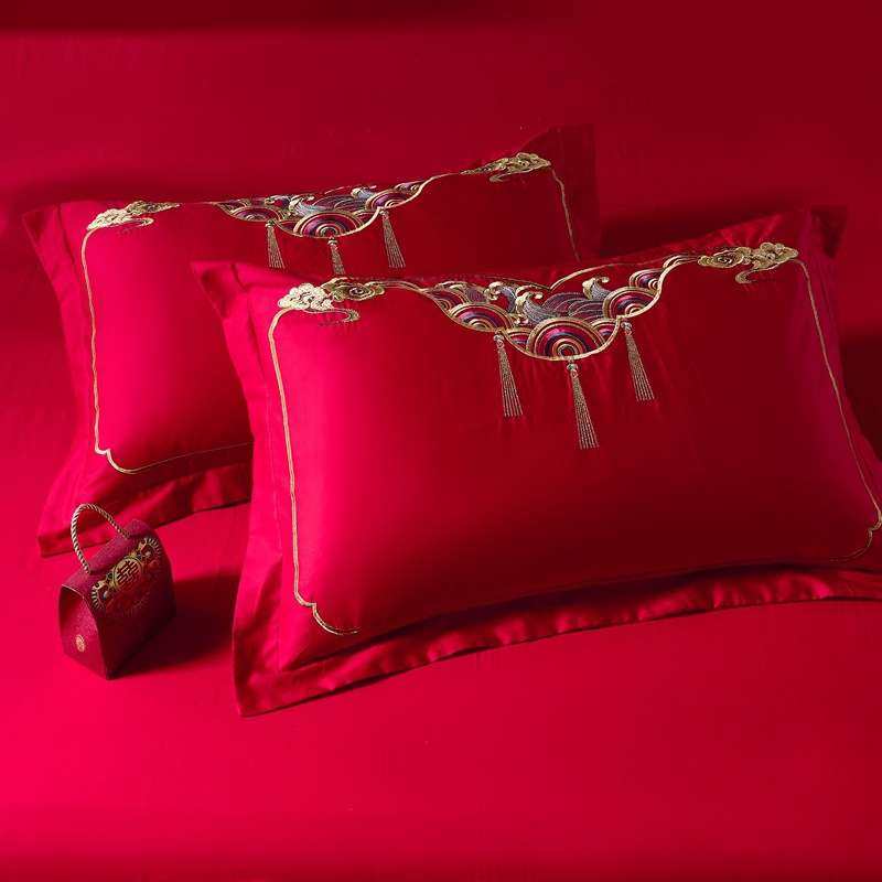 📚 龙凤刺绣四件套大红色结婚床上用品十件套全棉被套南通叠石桥家纺
