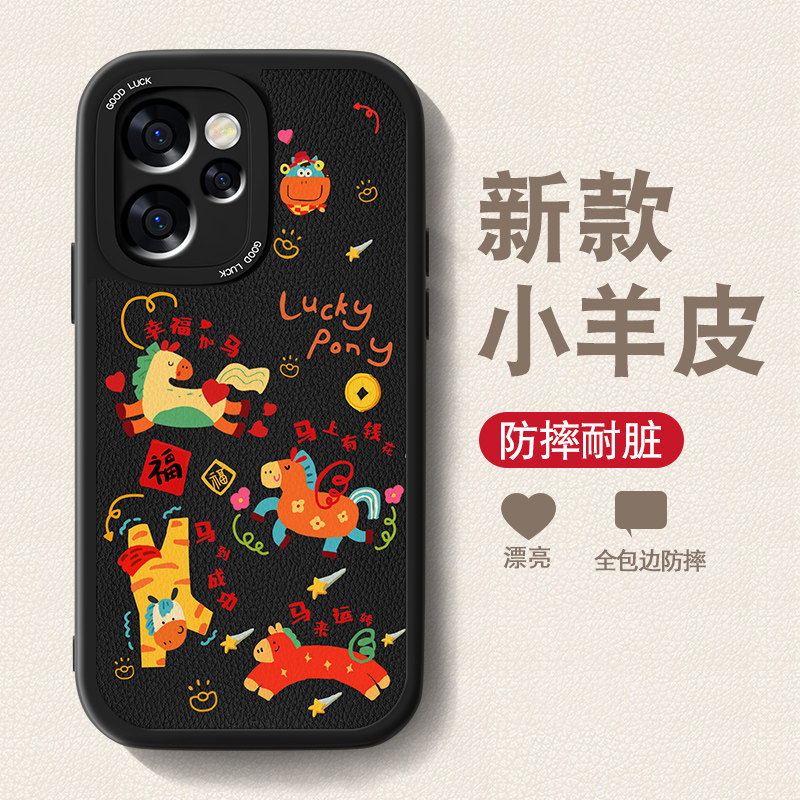 📚 适用马到成功opporeno15手机壳新款Reno15pro小羊皮全包Rone15c系列高级感新品rano防摔PLW110男女卡通喜庆套