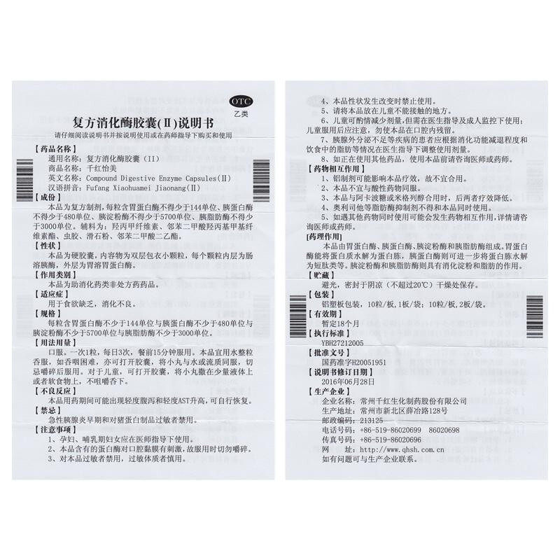📚 千红怡美 复方消化酶胶囊(II) 20粒/盒 用于食欲缺乏 消化不良