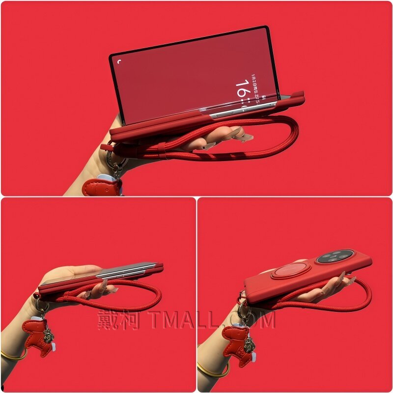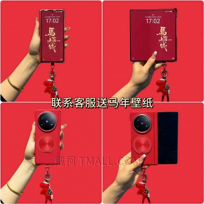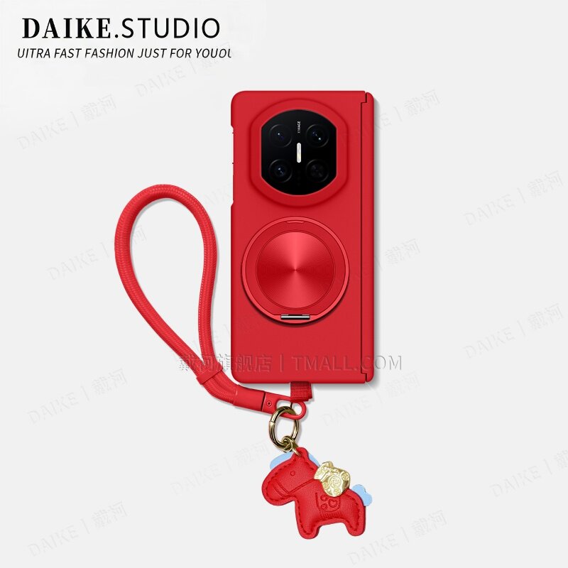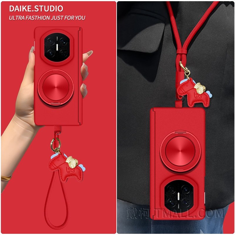 📚 【双中轴岩砂马年编织挂绳】适用华为matex7手机壳支架x6x5x3vivoxfold5magicv5vs3v2折叠FindN5fold7中国红