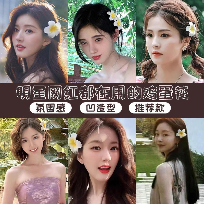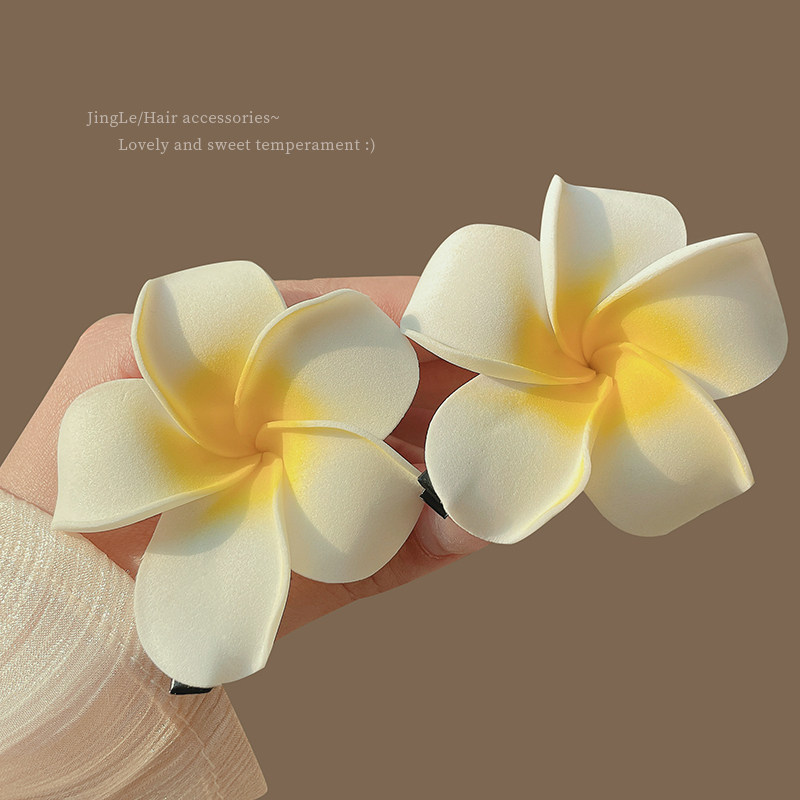 📚 鸡蛋花发夹头饰2025新款发卡花朵耳边抓夹海边发饰边夹女侧边夹子