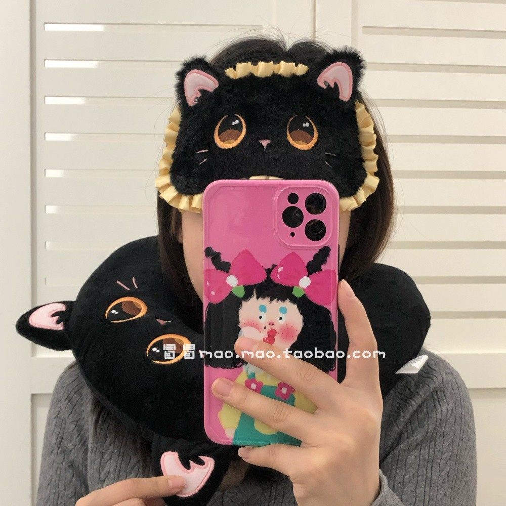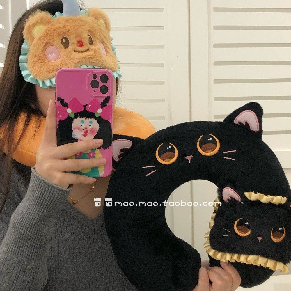 📚 可爱黑猫u型枕旅行高铁飞机专用护颈枕靠枕带眼罩套装助眠午睡枕