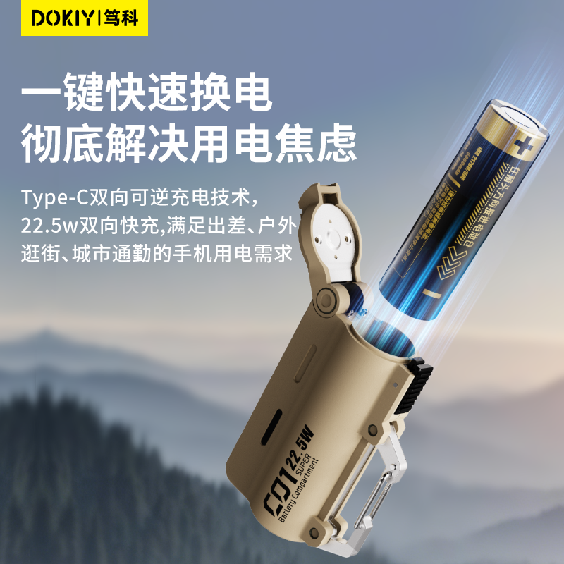 📚 【国标3c认证可上飞机】DOKIY战术可换电池换弹拆卸21700充电宝快充登山扣户外徒步移动电源适用苹果17air/16