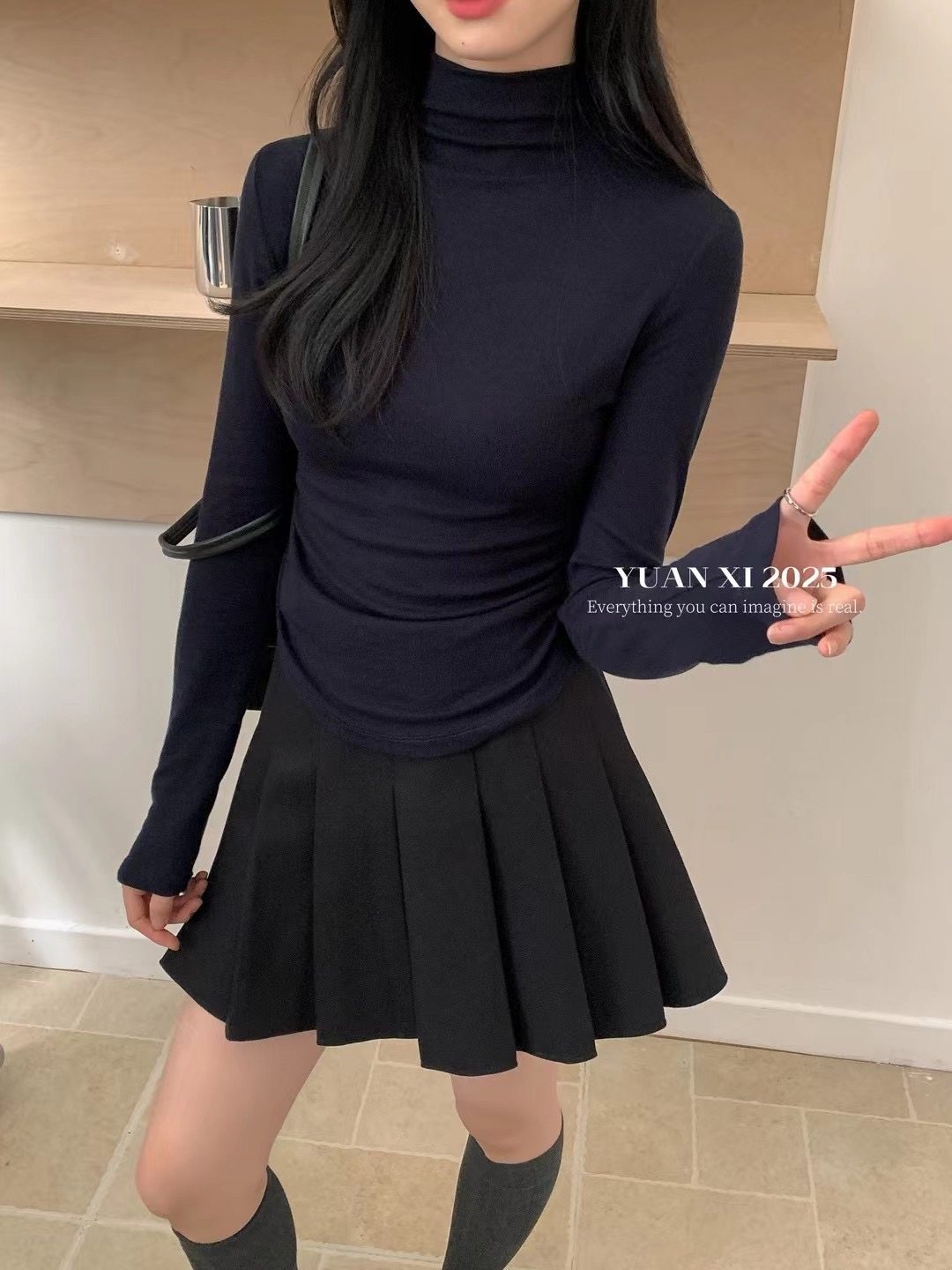 📚 元熙311半高领长袖T恤女2025秋冬新款软糯舒适收腰显瘦内搭打底衫