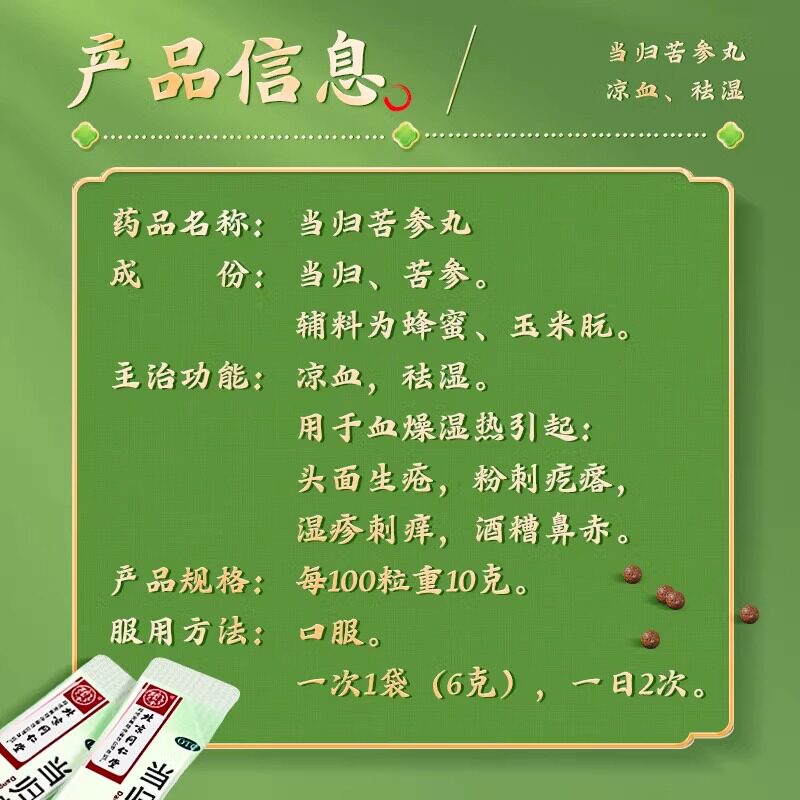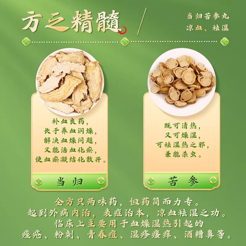 📚 当归苦参丸凉血祛湿药治头面生疮粉刺疙瘩湿疹刺痒酒槽鼻赤中成药