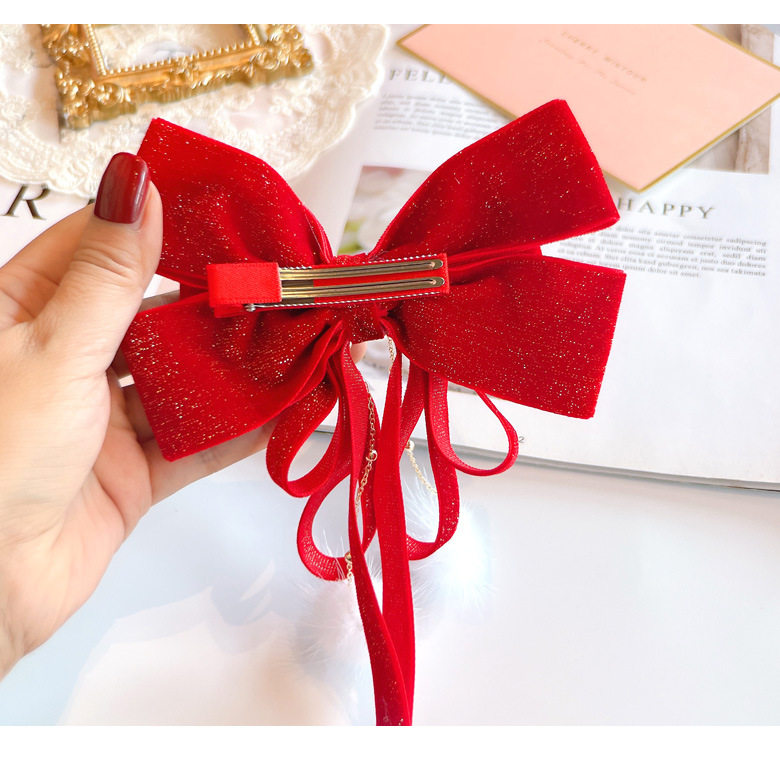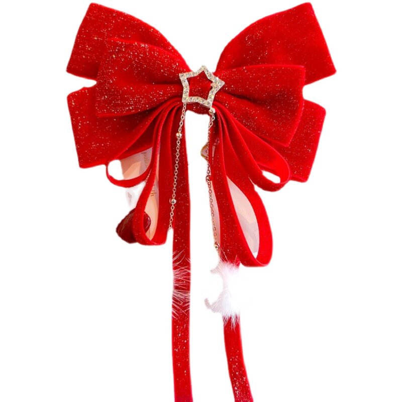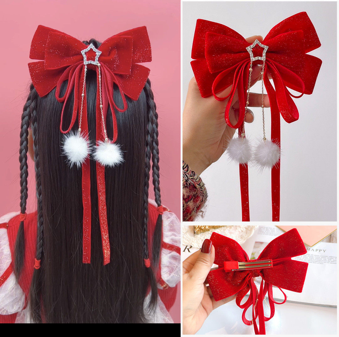 📚 小熙瓜新年大红色丝绒女童发饰宝宝大蝴蝶结披肩发儿童编发头饰