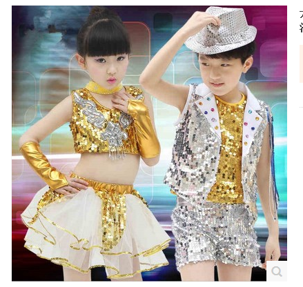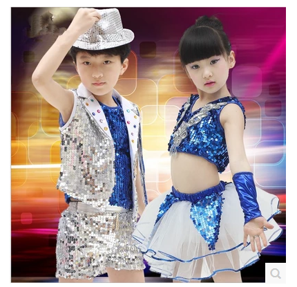 📚 六一儿童爵士舞演出服男女童现代舞台亮片表演服装街舞公主蓬蓬裙