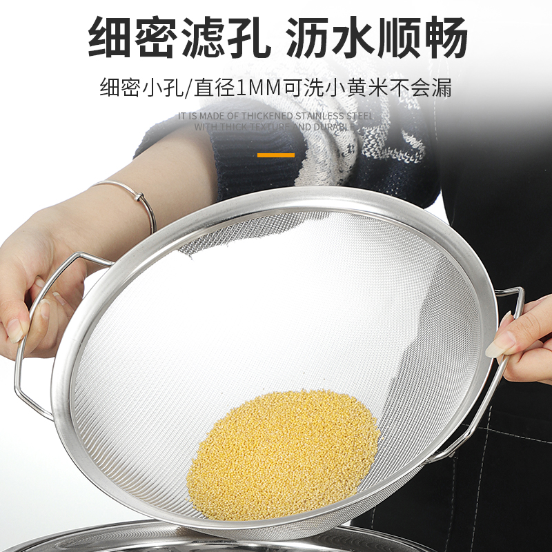 📚 不锈钢304双耳过滤网洗小米芝麻神器洗米筛滤油控油网筛面粉筛子