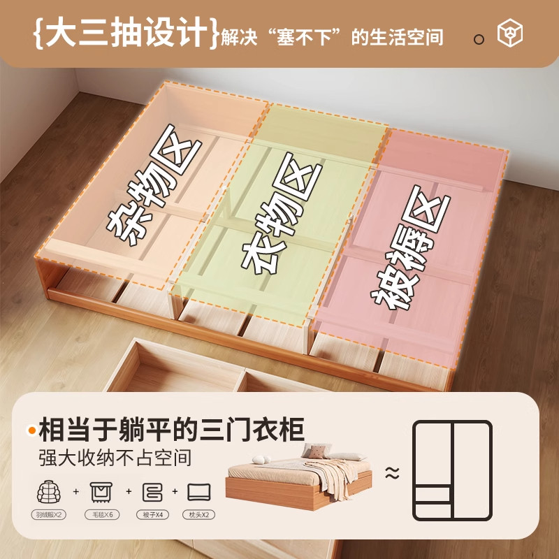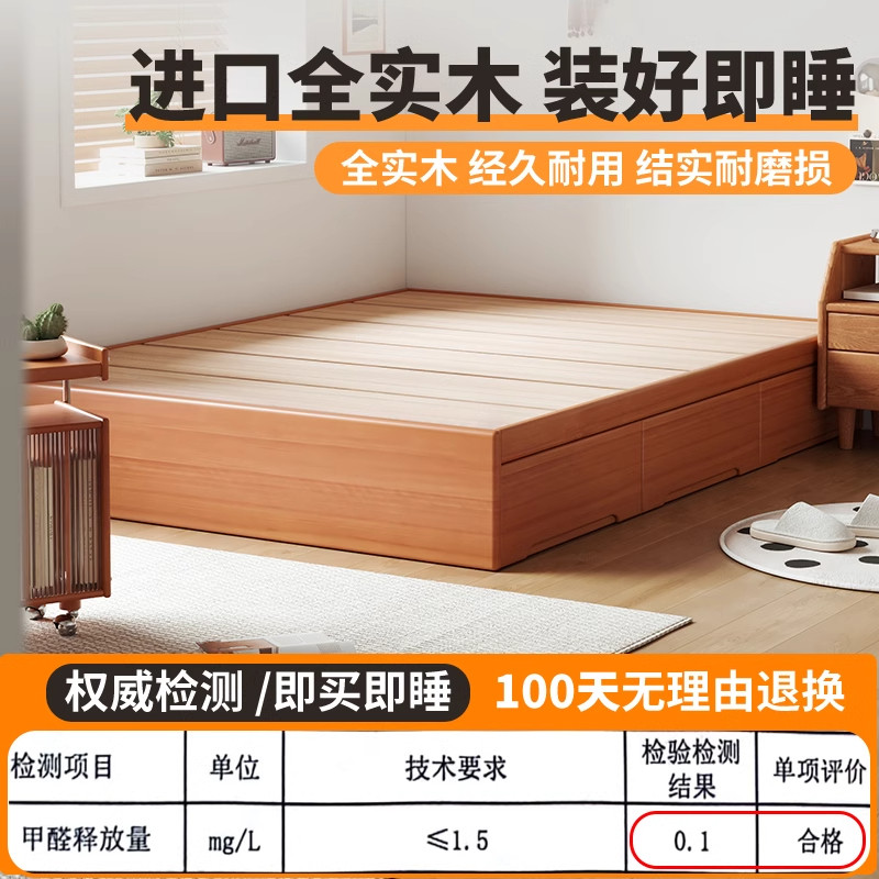 📚 榻榻米落地无床头实木床带储物箱体抽屉床地台收纳小户型排骨床架