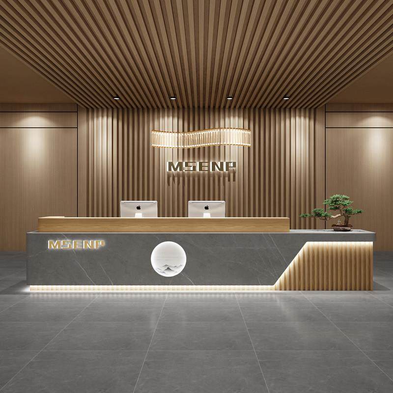📚 公司前台接待台简约现代美容院酒店会所吧台培训机构新中式收银台